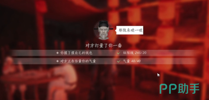而想要开启一把“叶子戏”,玩家还需满足两大条件,钱财是否达到要求,以及“气量”这一属性是否达到最低标准,NPC的不同也会使这两类要求有所不同,因此玩家在进行叶子戏这一玩法之前,需提高角色的气量,以及获得足够的钱财。