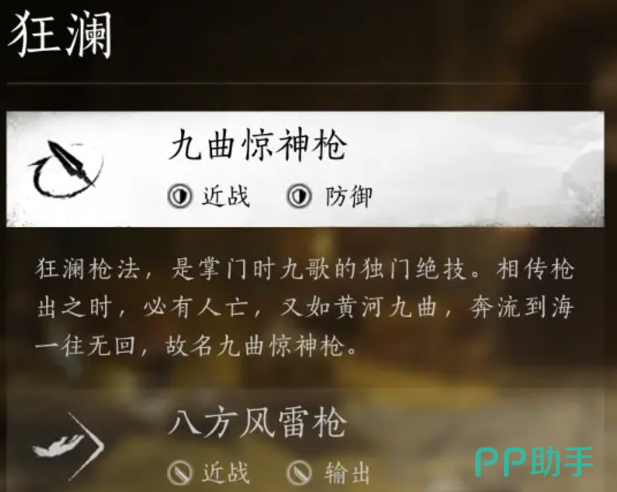 一旦成为狂澜门派当中的一员就可以获得九曲惊神枪和八方风雷枪,九曲惊神枪作为一款长枪,它可以多段突刺攻击,招式是变化无常的,一旦使用之后可以给敌人造成强有力的伤害。