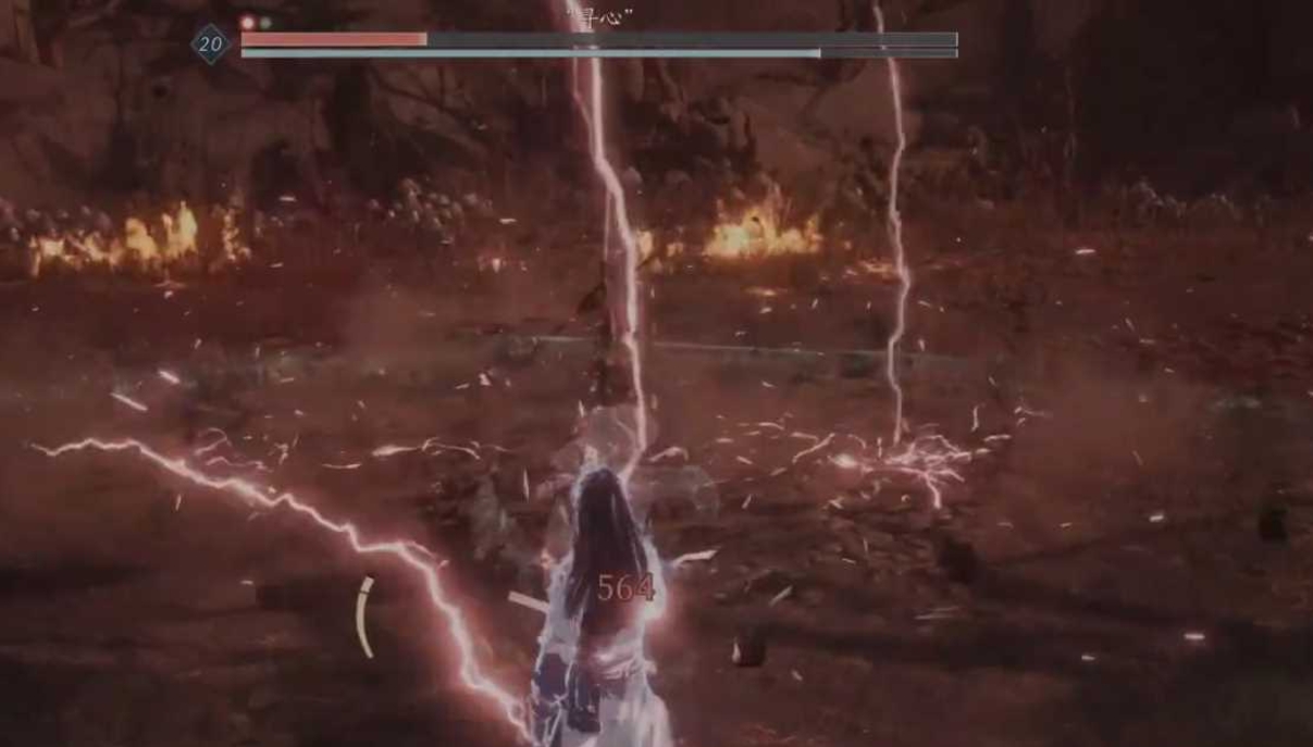 当洛神举起镰刀时,说明她要撤退了,此时会释放出瞬移的技能,猝不及防的出现在你的身旁,对你造成非常致命的伤害,这时玩家需要提前预判好,成功的闪躲她的技能。在闪躲的过程当中可以回血,同时也可以进行反攻。玩家在打掉洛神的第一条血之后,可以恢复自己的生命值,但是此时会释放出满屏的雷击伤害,这时玩家就需要找到躲避的地方。