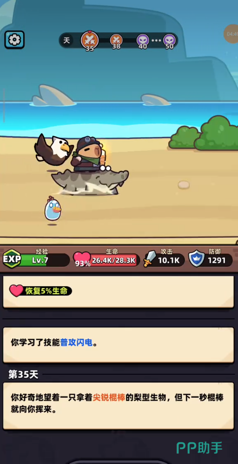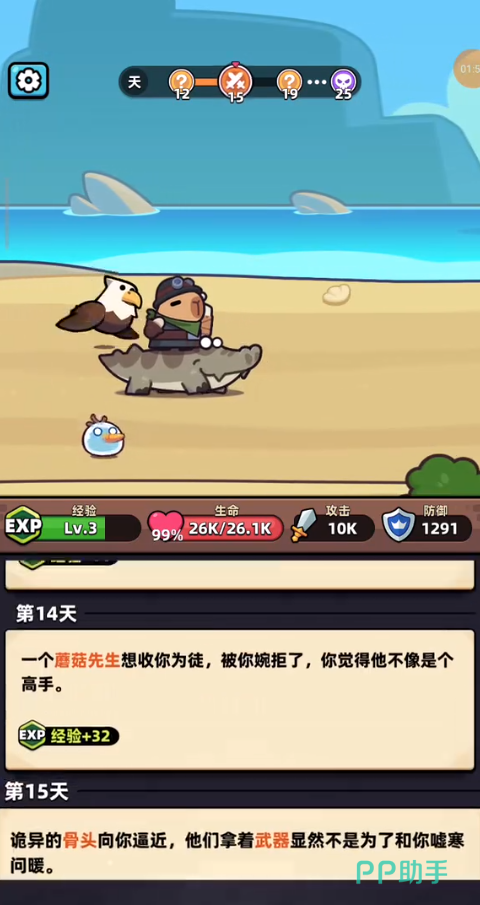 游戏使得你每一次控制卡皮巴拉进行玩耍都是随机降临到不同的场景画面里,你每一次上线的经历绝对是不一样的,或是危机四伏,又或是幸运之神笼罩,绝对能勾起你的兴致,让你玩了还想玩,每天都有新鲜感。在游戏里,你若是操控卡皮巴拉降服了鳄鱼、海鸥等等生物,它们就会统统成为卡皮巴拉的坐骑。