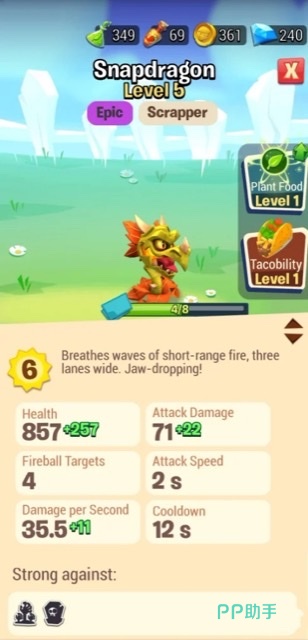 别看大蒜个头小,作用可不小,它能把来犯的僵尸推到其他线路上,打乱敌人的阵型。配合叶绿素,还能造成伤害,让僵尸们有苦说不出。更厉害的是,搭配玉米卷后,它还能阻挡飞行僵尸,并获得护甲和吸血效果。火焰豌豆射手它不仅能发射火焰豌豆攻击敌人,还能对目标周围的僵尸造成溅射伤害。