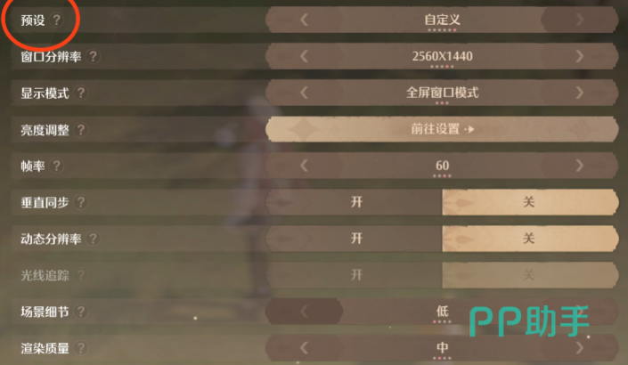 预设,这个不建议动,会改变其他的选项,来回调是很麻烦的。窗口分辨率、显示模式,建议全屏窗口模式,分辨率根据显卡和显示器来。亮度不用管,直接调显示器。帧率,这里除非是性能特别好的显卡,不然一般直接默认锁60FPS就行。