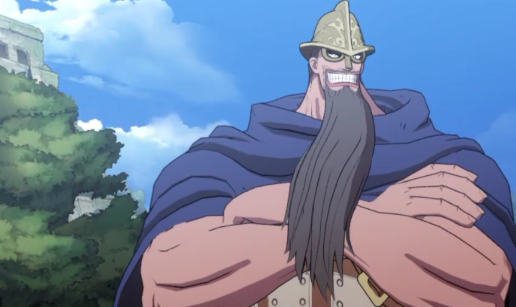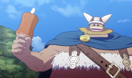 布罗基手上常年拿着一个巨大的肉块,外号叫做红鬼,性格方面非常幽默,有着浓密的胡子,头上带着一定有点像是牛角的头盔,同时他和多利是一队兄弟,两人都是巨人族的勇士,主角团初次遇到他就是两人一起。