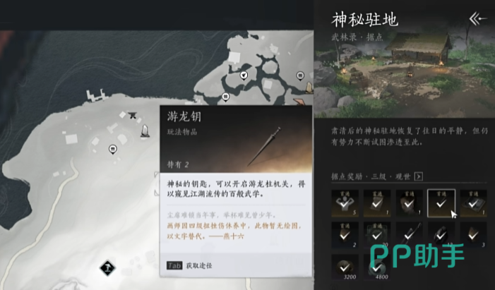 游龙钥匙消耗完了后可以前往各个驻地,就是地图上红色牌子的地方,首通驻地是有给的。前往偷师之前也需要拿到“凌虚一指”不然偷师会比较困难,这个奇术可以探索百草野右手边的燕北盟可以获得,做好这些准备就可以双击游龙匙前往偷师了。