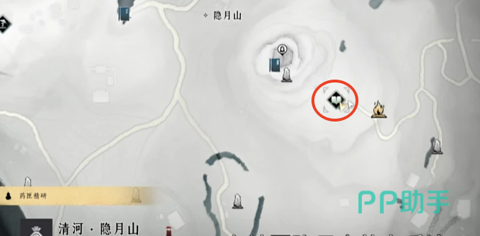 想要偷师得先完成一个前置任务“偷师·取之有道”,该任务接取地点位于清河的隐月山,如图所示的位置,在隐月山的右手边,追踪这个任务然后根据提醒听声辨位。