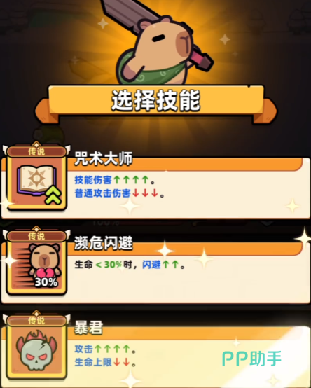 作品是以放置类型玩法为主,整体感觉是属于比较休闲。起初进入的之后并没有新人的引导。游戏采用的是时间制,一开始大家只有这一名主角外加一个蘑菇队友。我们所在的位置则是霜峰山。这个地区按照说明是一片永冻的区域,之后会提示我们拥有一枚冒险家勋章,这样便可以选择一个技能。一开始的技能选择有很大的几率可以选择到传说技能,这里建议可以选择暴君,这个技能虽然会降低自身的生命上限,但是却可以极大幅度增加自身的攻击力。