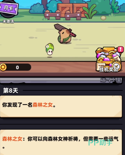 如果翻出来的牌不止3个那么就有可能挖出宝箱,宝箱里面都是高稀有的技能。除了技能外还有着一次转盘,这个转盘非常看脸,如果运气不好的话那么直接就会GAME OVER。因为是第一次旅行,所以不少的事件都算比较固定的,一般第一次的旅程之中遇到的技能都是稀有度很高的,但是绝大部分玩家差不多在40天左右会结束冒险,之后我们在冒险中赚取到的金币和钻石都可以从中带出来。