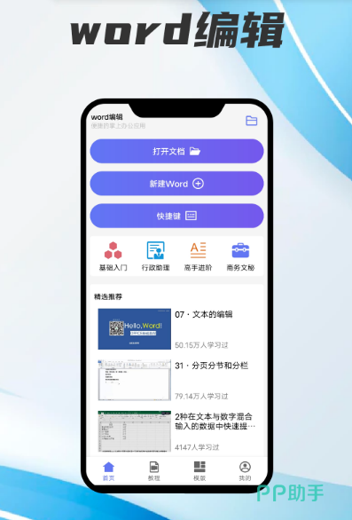 内容丰富,功能强大,所有格式几乎全面支持。完全免费的app,全面的图文教程,无需担心不会操作。丰富的简历模板及众多模板,包括收入证明、教学视频等,即便是办公小白也能根据这些相关视频学习具体的技能,即学即用。有丰富的格式转换工具,比如pdf转word,在相当便捷的情况下一步转换。