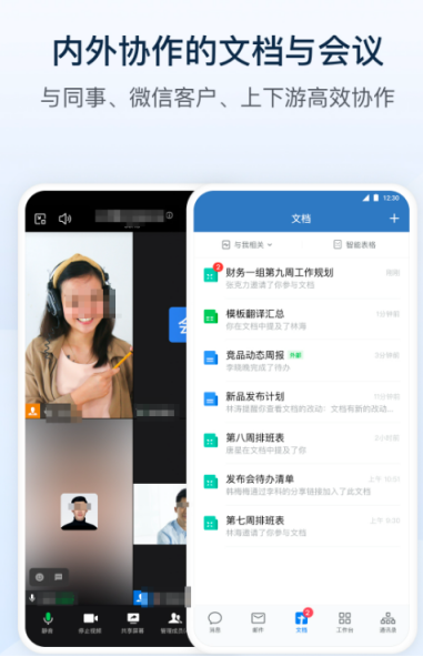 目前多家企业都使用了这款软件,方便沟通协作,是一款既高效又非常省事的管理软件,支持电脑和手机多端使用,还可查看发出的消息是否看到。将员工的信息导入,能实时与员工沟通,具备了客户群,合理的管理客户成员,随时可开启网络会议,支持多人共同到微文档中修改文件,可将重要的内容储存,拥有办公中多项丰富实用的办公工具。