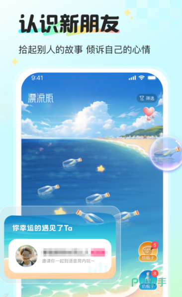 目前有4亿用户在该软件上社交,真实可靠,即使与对方没有互加好友也能畅聊。通过智能推荐找到与自己有同样兴趣爱好的人群,到语音房中多人畅聊更欢乐。