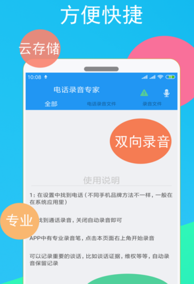 从事律师方面的工作者,在工作上的每一通电话内容都有记录的需要,《电话录音专家》能将通话过程中的全部内容录制下来,出现纠纷的适合,用来作为凭证。是双向自动通话录音app,超大的储存空间更是让用户好评如潮,现场录音也支持通话录音,比较方便又省事,设计了独特的通话专线,能减少有噪音的干扰。