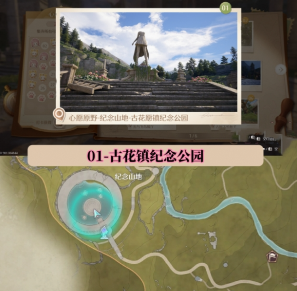 在整个游戏当中所涉及到的打卡点是特别多的,比如位于心愿原野。纪念山地的古花镇纪念公园,它其实就作为一个打卡点,玩家可以到这个位置打卡。另外在纪念山附近还有纪念山地的独木桥,其实也作为打卡点。