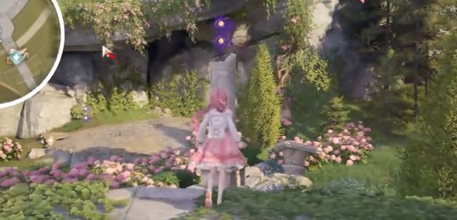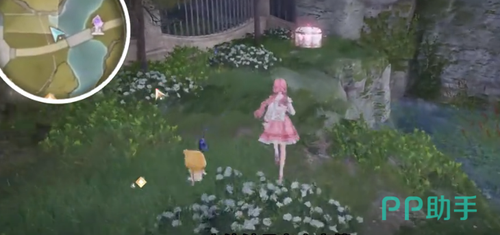 玩家可以从纪念山地的传送点出发,向后过桥右边就可以看到有宝箱,然后从原路返回又跳到第3个石头这边马上就能够得到得奇想星,接着又选择原路返回的方式,按照小路来前行,在铁门这边也有两个灵感露珠。