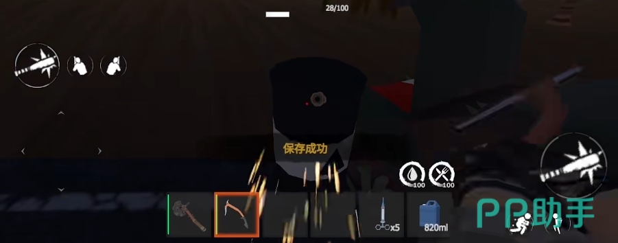 于是需要切换至锤子工具,并点击已建好的对象进入编辑模式,在这里大家会看到几个不同级别的升级选项,从木质到钢铁不等,对于新手而言,推荐先选择升级至石头这一档次即可提高安全性,然后屏幕左上角清晰地显示着角色当前的生命值,水分状态及饥饿程度等关键信息,当任一指标降至危险水平时,都会对人物造成负面影响,特别是如果血量低于50%,画面将变得血腥起来以示警告,随着健康条继续减少,这种视觉效果会愈发强烈直至完全变红。