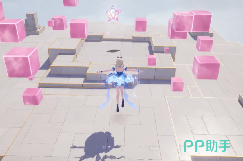 这时候跳到最下面,这里有一个比较陡峭的土坡,然后土坡附近有一个空间,可以前往奇妙空间,空间的主要玩法就是推箱子,玩家们需要借助箱子的中立将中间的通道树立起来,接着会看到两处激光标志,需要使用箱子遮住其中的一道激光,这样前面的道路就会打开,然后再将后面的箱子推进来,这样就可以挡住另一个地点的激光。