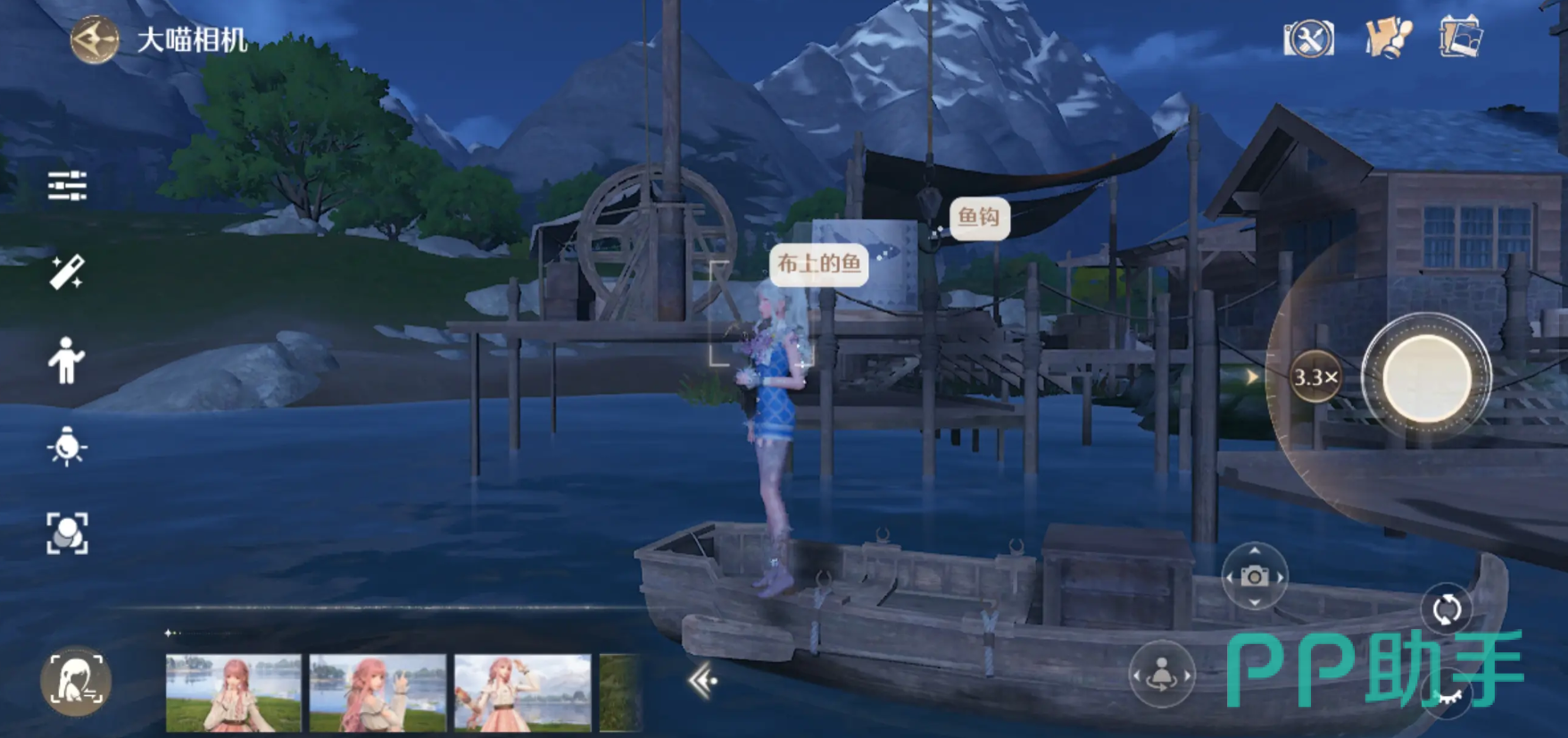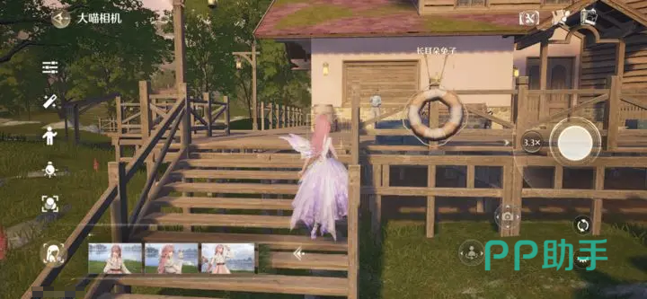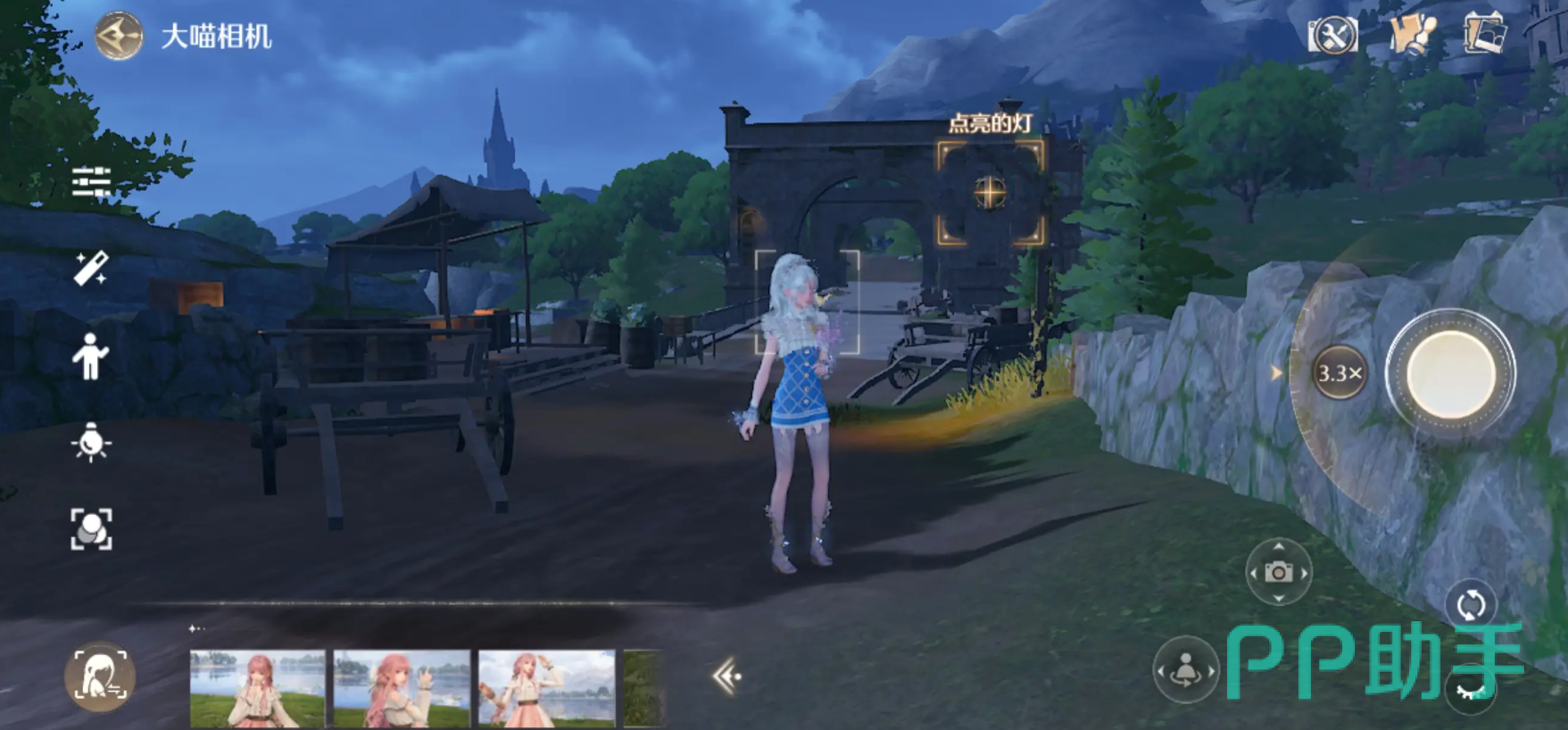 镜头旋转也需要关注,调节镜头自身XY轴旋转,达到不同构图效果,可以参考一下-20°,或-90°的效果。闪耀角度能帮助大家更快的找到合适的构图、动作,辅助拍照的作用还是比较好的;摄像头实际到角色之间的距离也要根据具体情况调节。