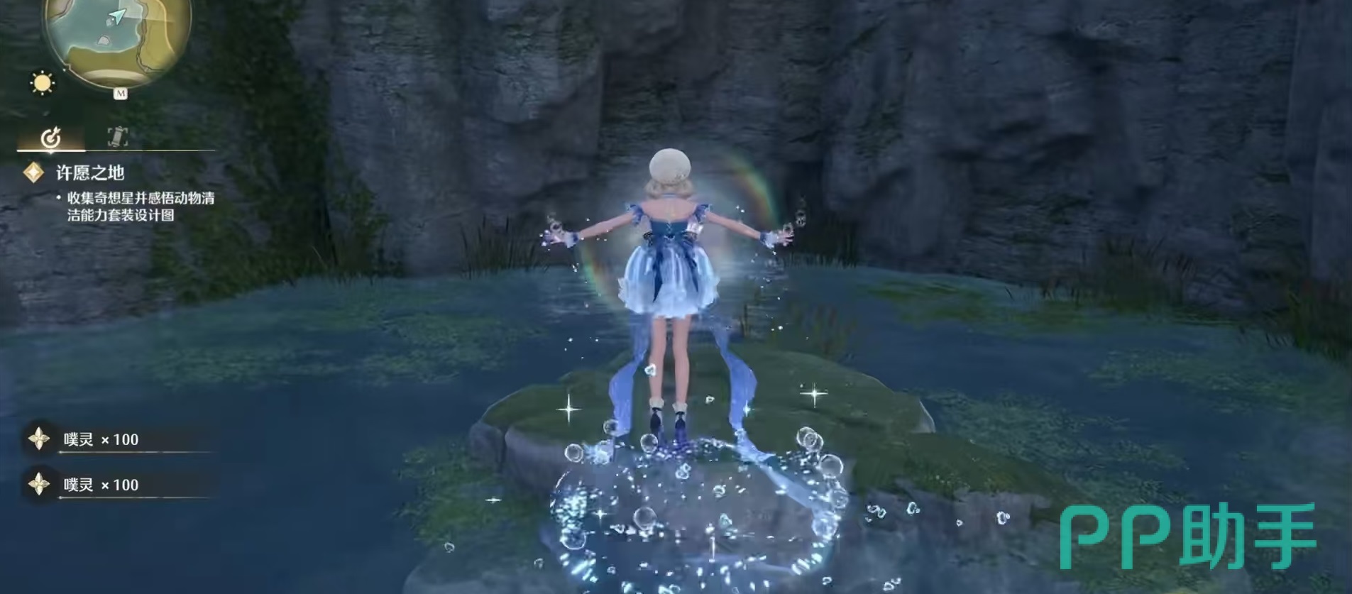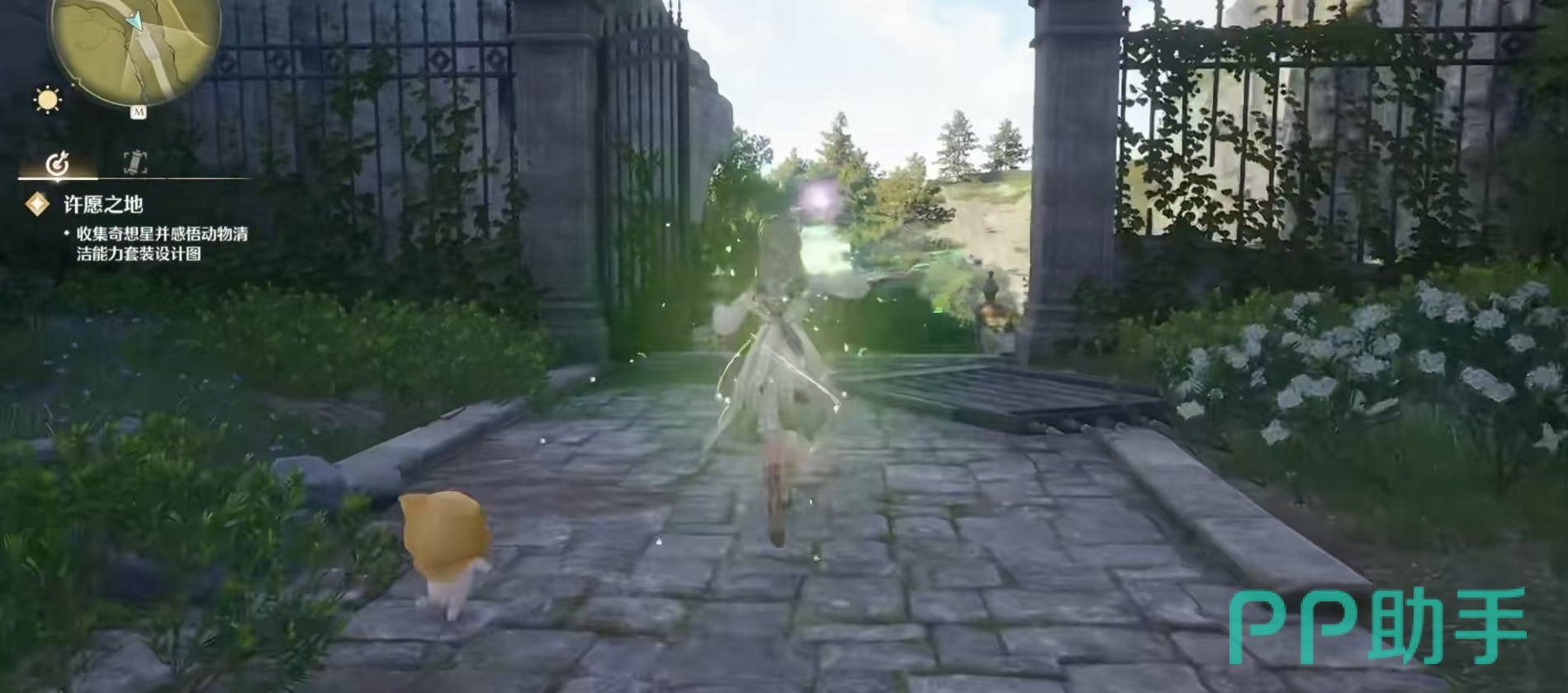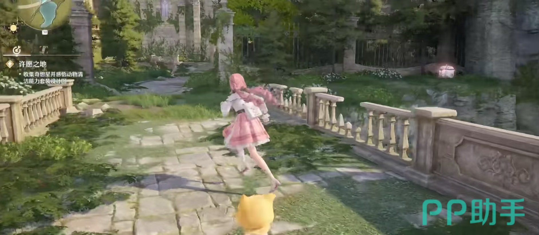 首先来到纪念山地传送点位置,来到传送点后向后走过桥,右边这里能够发现一个宝箱,打开宝箱之后原路返回。一直往前走,从几块石头那里跳跃着过河,过程中要拿到星星,这里有一个奇想星,一定要收集到。拿到奇想星之后继续原路返回,采用跳跃方式回到原来位置,再继续往前走,沿着一条小路走出去,一直走到铁门外面,这里有两个灵感露珠也要拿到,如果有些玩家没有看到,那么就是新手任务出来时候就已经拿过了,如果没拿肯定会有。