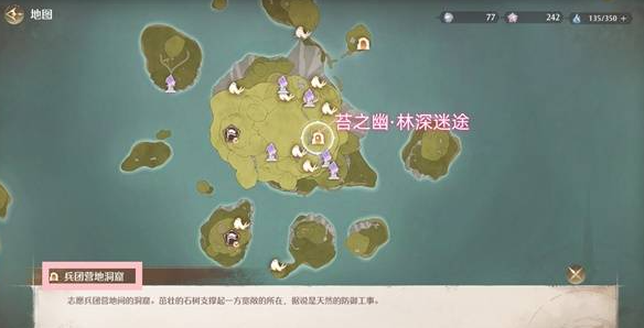 除了这些之外,玩家还可以看到有一些特殊的采集,例如会有一些香氛材料。藤之沁和肆意蔓生位于村郊洞窟,苔之幽和林深迷途位置是在兵团营地洞窟,柠之香和沁下风巡位于仓库附近的洞窟。玩家可以来到指定的地点去获取。