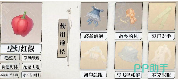 游戏中的植物材料很多,例如会有纽扣松果,壁灯红椒,还有株花贝壳。这些植物主要的位置是在石树田无人区,小石树花田,还有祈愿森林等。另外还会有动物材料,动物材料有蜻蜓蝴蝶,还有蜜蜂,还有背带毛团,汪汪毛线。