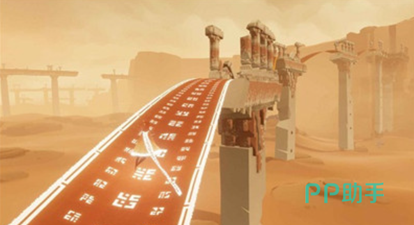 化身为无名行者,将攀越高岭,越过桥拱,不断追寻并复苏路上的碑文,直至登顶,享受一场壮阔而优雅的旅程。游戏内动作设计轻盈灵动,特别是飞翔动作,与角色的长巾紧密相关。玩家能搜集光点以延展长巾,延长飞行时间,深化游戏沉浸感。另外,可选择独行或与友伴并肩,在古老遗迹与沙海间滑翔,探索未知世界。