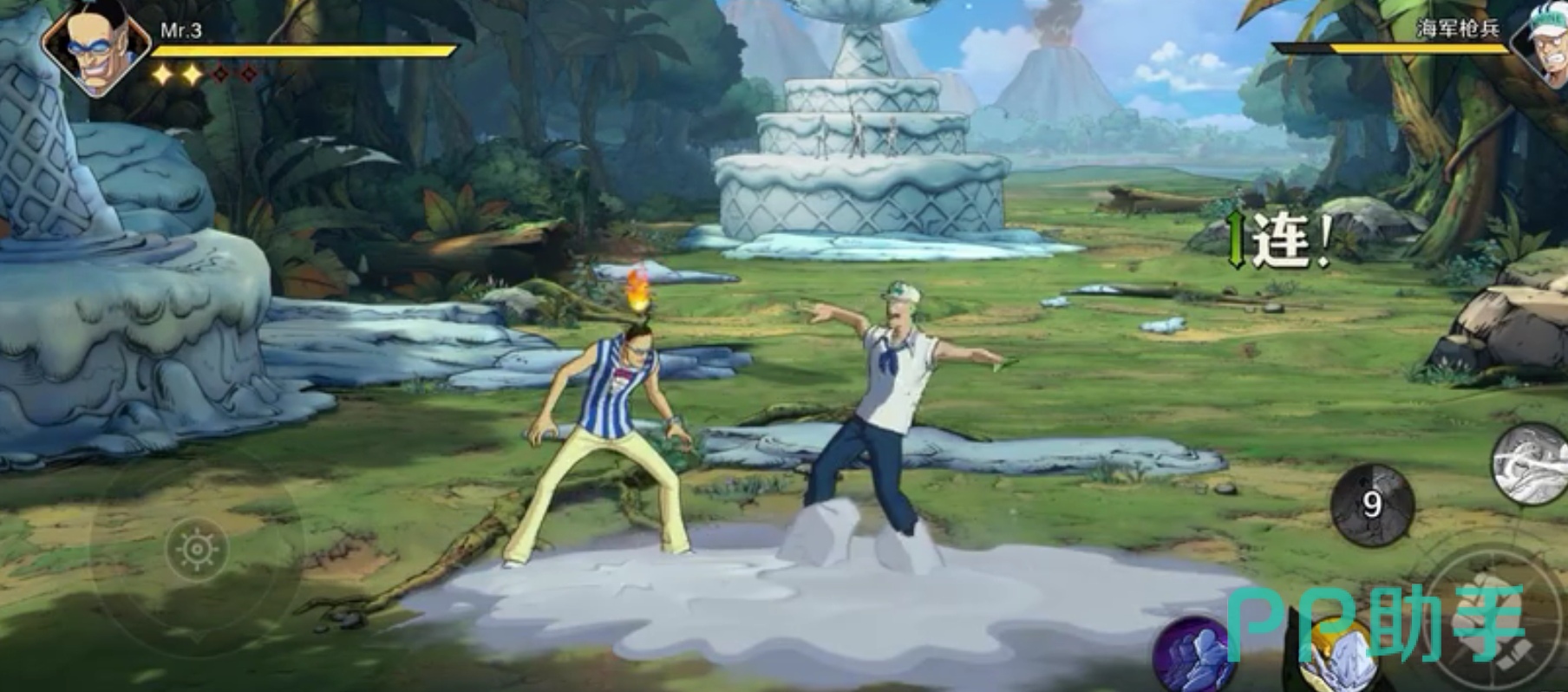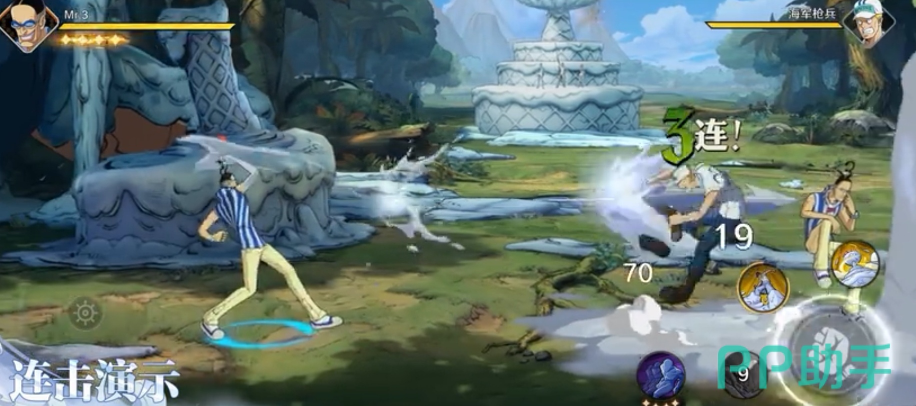 Mr.3的技能一共有四个,分别是普攻、奥义技能、蜡烛剑攻击技能以及蜡烛墙技能(实际上他还有个被动技能,但是鉴于无法主动使用,所以小编就不算上了)。先从他的普攻技能来分析,Mr.3的普攻可以进行五段攻击,把这一普攻跟二技能蜡烛剑合体使用会有更好的伤害,具体的使用方法就是等第二段普攻的黄金条结束时,直接点击二技能即可触发。
