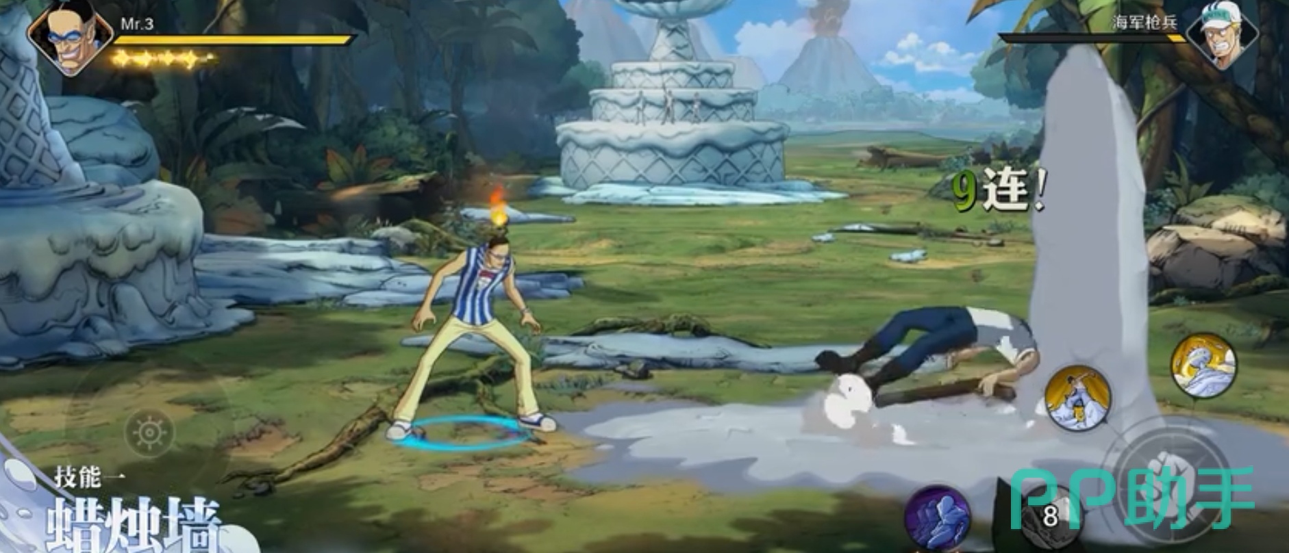 最后就是蜡烛剑这一技能,这个技能比较简单粗暴,Mr.3在施展这一技能时,会将手按在地上,延伸出大量的蜡液,这些蜡液具有禁锢作用,能够把敌人禁锢在原地无法移动,一旦有延伸出来的蜡烛液经过那些凝固蜡液时便会再度扩大禁锢范围,属于大范围群体攻击,就是技能使用时间有限,容易被打断。