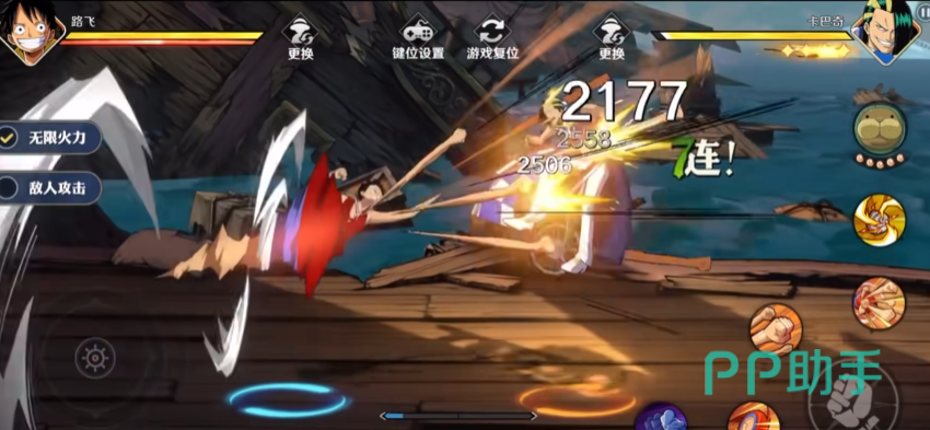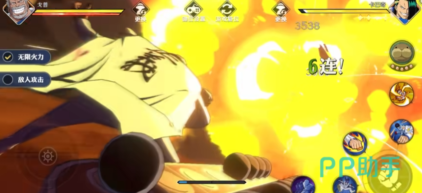 这时候的路飞还是刚出新手村的路飞,大招是先用橡皮膨胀成气球,随后扭转社区开始不停地旋转,使用机关枪连续打击敌人,会有一个近距离脸部特写,和他的很多其他招式那样非常喜感。