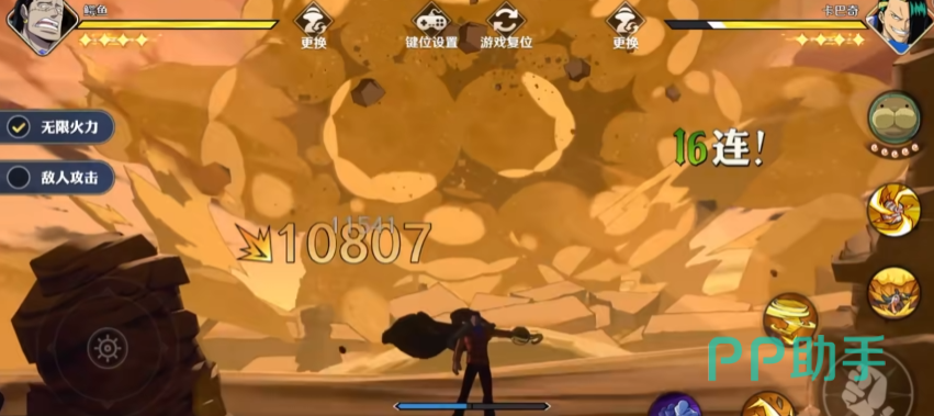 奥义“踢击套餐·串烧”,蓄力后的连续踢技,短暂蓄力向着斜前方踢击命中后会开启奥义动画,对这敌人从不同方向连续踢,最后高高跃起,朝着下方猛烈地踩踏冲刺攻击。