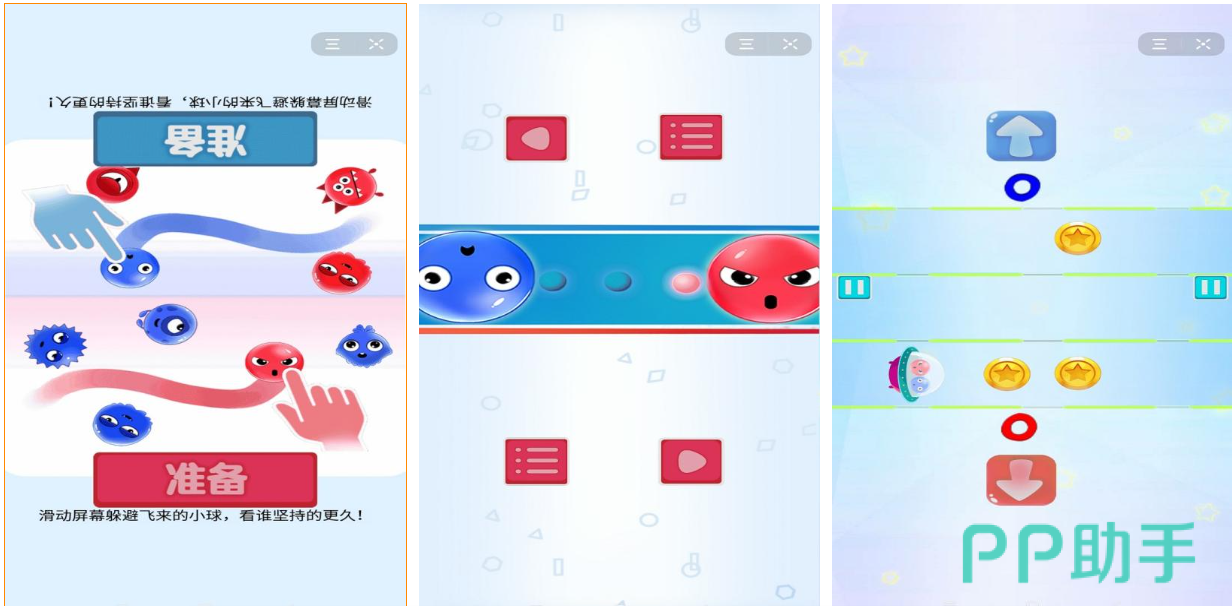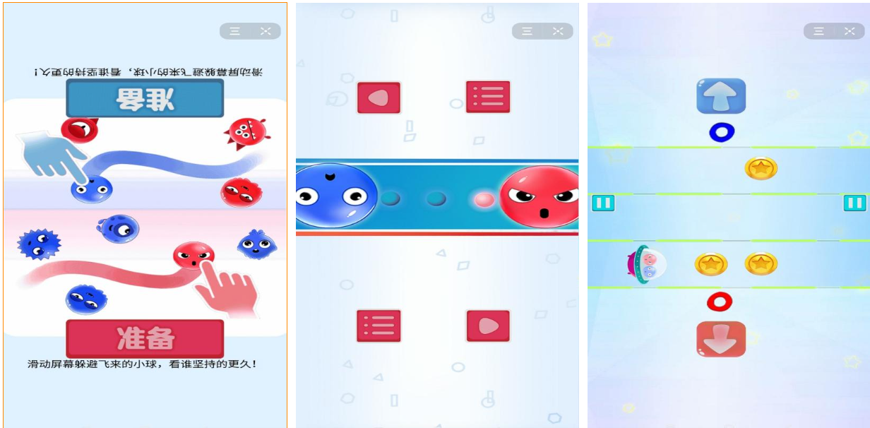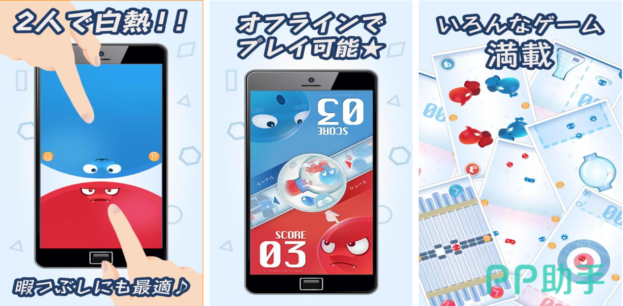 这款具有一定日式元素的双人竞技游戏内容也极为丰富,双人点击、冰球模式等超多玩法新鲜感十足,竞技性也很强能让两个玩家获得血脉喷张的游戏体验,操作难度适中上手极其容易令人久玩不腻,红蓝的配色也意味着游戏具备着双人互动的机制,简约的美术表现以及悦耳的BGM展现也是本作的点睛之笔。