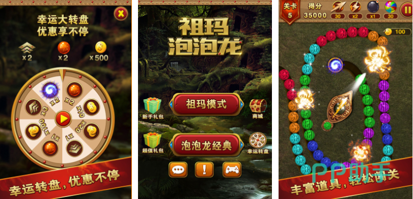 祖玛泡泡龙这款魅力十足的泡泡龙模拟游戏玩起来十分解压,整体画面较为出色而且爆炸效果十分炫酷,玩法很容易上手也会让玩家轻松排解压力,愉快的游戏氛围结合丰富的模式更让玩家拍案叫绝,点触屏幕发射各种颜色小球的设定也非常特殊,相信屏幕前各位泡泡龙游戏爱好者已经迫不及待想下载本作了吧。