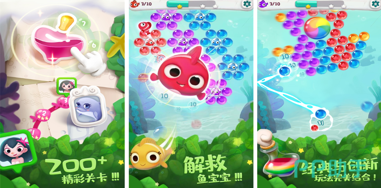 这款能够单机独立运行的泡泡龙主题手游玩法简单老少皆宜,还原经典操作和消除机制的设定令人拍案叫绝,出色的音画以及全面升级的特效表现都增加了游戏的可玩性,美妙的音效加持更容易让泡泡龙游戏爱好者放松心情,化身美人鱼进入海底世界使用泡泡进行消除的过程快感十足,全新设计的各种关卡也让游戏的可玩性更高。