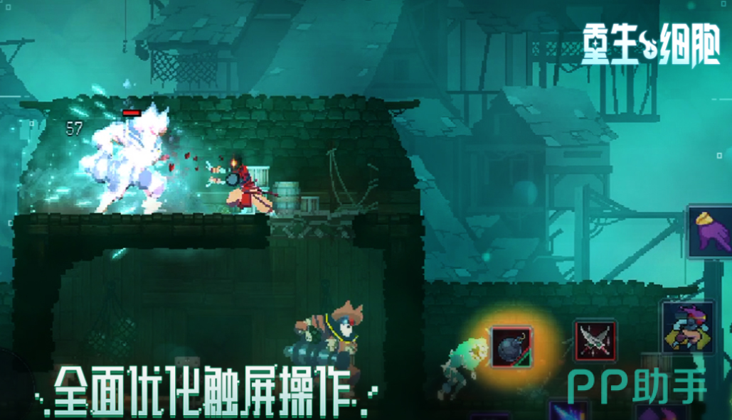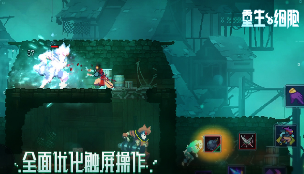 重生细胞绝对是最值得一玩的端游移植像素风动作冒险类游戏,也是类银河恶魔城系列游戏中最具代表性的作品,游戏采用全优化的触屏操作体系让人久玩不腻,打击感以及像素粒子特效也无懈可击给人血脉喷张之感,敌人和各种武器道具都是随机刷新的,所以这款作品的新鲜感也是毋庸置疑的。