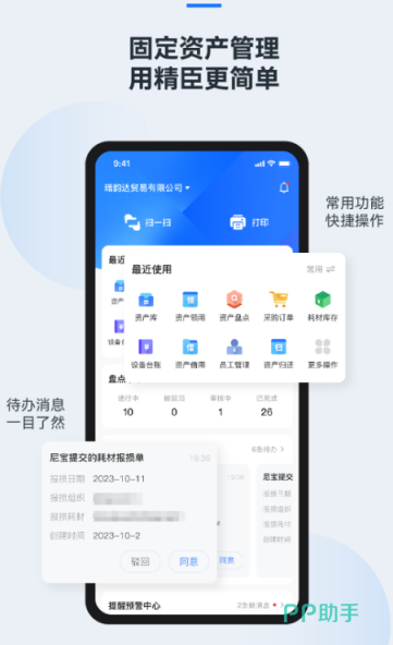该应用为合理的管理资产带来了极大的帮助,在采购以及资产盘点等方面也有相应的服务,适合企业中从事财务方面的工作人员,如果手机上还没有下载这款软件就快快详细地了解一下吧。为用户提供多样式的统计报表,具备了多项操作,还新增了很多的功能,比如有扫描、调拨出库、归还资产核对等一些功能。