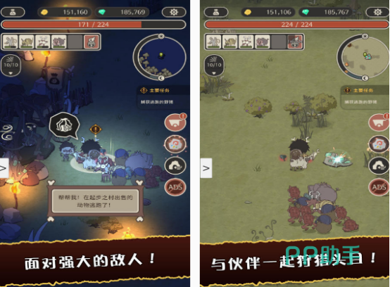 在这款充满着卡通设计的游戏中,你将会面临强大的敌人,需要与小伙伴共同的展开狩猎,才能让危险的夜晚平安度过。当你置身于所设置的世界以后,会发现虽然它的人物小巧可爱,不过在面对各种神奇生物时,每个人物都能展现出自己超强实力。利用不断解锁升级的方式,你就能看到设计的英雄动物。还可利用收集遗物或者装备的方式解决突袭事件。