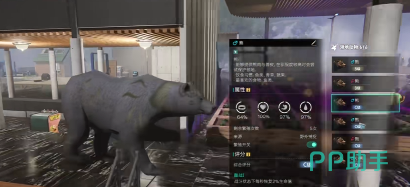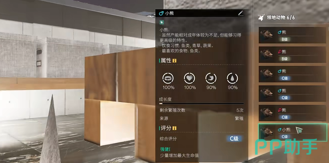 野外的动物等级分为SABC这四个级别,不同等级能繁育的次数不同,S级动物最多能繁育7次。品级越高可以解锁的词条属性也就越多,最多4个词条属性。