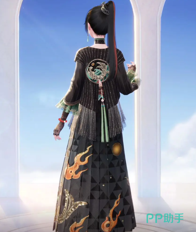背后的话同样是原型的中式元素,除了龙尾和鱼尾等基础动物元素外。还加入了三角形以及金丝镶嵌,整体看着特别大气优雅。当你将其进化之后还可以解锁新的配色,绿色会转变为蓝绿色,看上去更精致温婉优雅,年龄仿佛也变小了。
