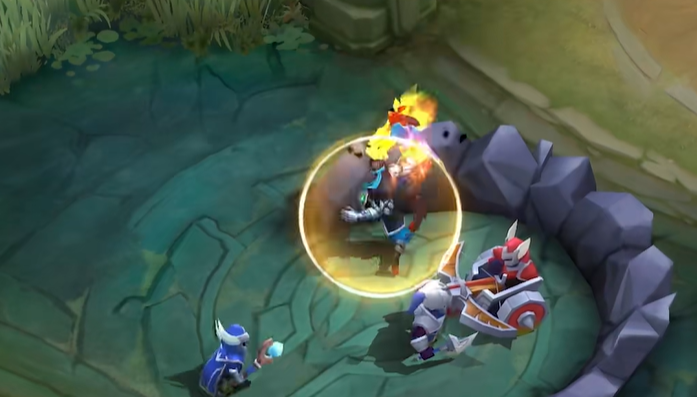 首先来看对线的基础连招,对线的时候可以先利用一技能的拳风进行消耗,同时距离较近的时候接上二技能就能形成一个墙体,然后在将一技能和普通攻击命中就能巨额的伤害,这样对线期就能建立绝对的优势。