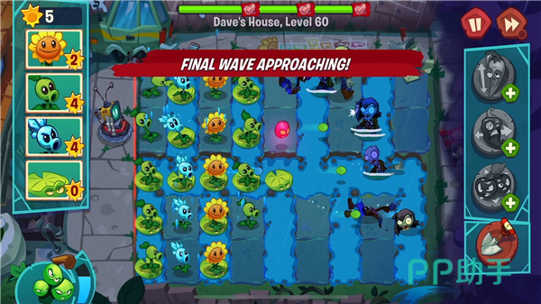 一定要合理利用投掷类植物。这一设计不但使游戏更加深入,而且使每个关卡都能给人新鲜感。僵尸军团类型也很吸引人,在游戏中高达数百种不同僵尸,各具“独门绝技”,让人爱不释手。也使得玩家们必须绞尽脑汁,面对比赛中出现的种种局面。