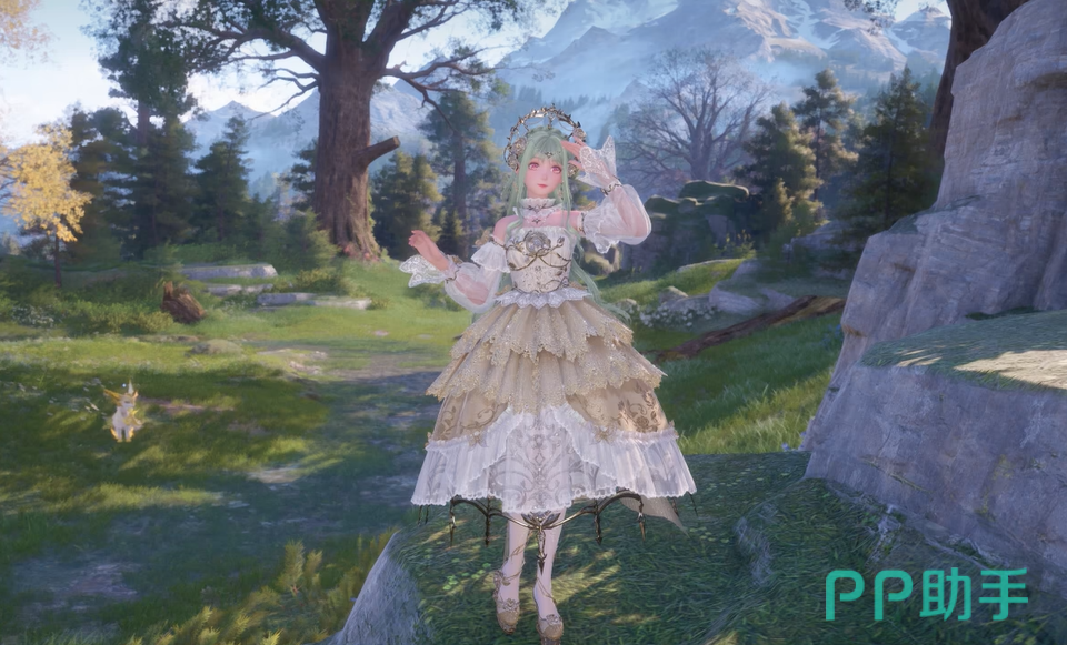拿到设计图并不意味着你立刻拥有整套服装。设计图只是第一步,接下来你需要通过各种挑战和收集,逐步制作出每个部件。虽然过程稍微费些心力,但都是免费的,花点时间绝对值回票价。这套金蔷薇奇迹服装就像游戏中的一件艺术品。它的连衣裙采用了金色与白纱的绝妙搭配,裙摆流线优雅,头饰和手套等细节更是精雕细琢,整体效果华贵又不失灵动。