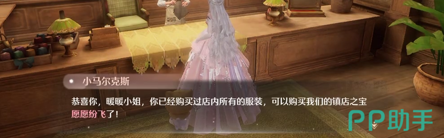 【镇店之宝】愿愿纷飞的购买是【镇店之宝】愿愿纷飞需要玩家将马尔克斯服装店所有的东西买完之后再来到商店鱼。马尔克斯进行交谈时才会触发的一个购买选项,在这个对话触发之后,玩家才能够发对应的货币来买到正店之宝这条裙子哦。
