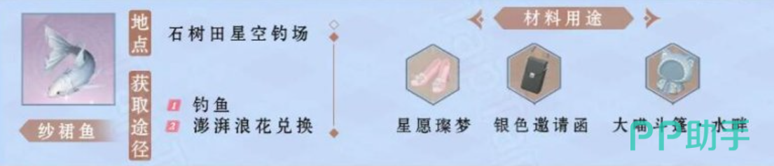 玩家可以去石树田星空钓场,直接钓纱裙鱼,当然对于玩家来说在钓鱼的时候要准备好银色的邀请函,星愿璨梦等等,不过纱裙鱼获取的时候,可以是玩家钓鱼或者是使用澎湃浪花来进行兑换。