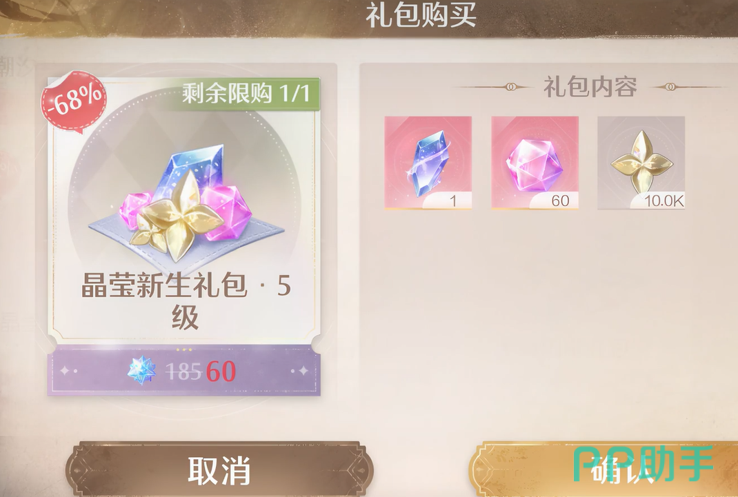 游戏中的主要氪金货币叫做无垠星石,看起来像是一颗晶莹剔透的蓝色宝石。在首次充值时,官方会赠送一个超级福利:双倍星石!换句话说,充值100元即可获得2000颗星石,堪称新手氪金的最优选项。如果你打算投入少量资金小试牛刀,建议一定利用这个翻倍活动,不然之后再想获得这么高的回报可就没有了。