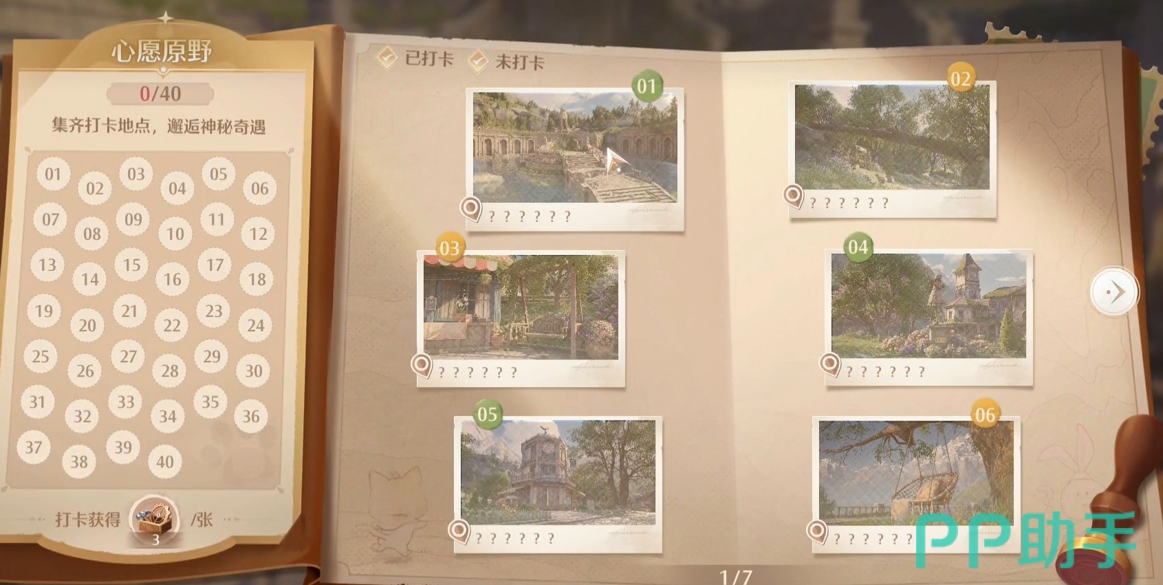 在开启世界巡游后,人们可在指定地点用拍照的方式来进行打开,全部完成后可获得相机升级零件。虽然该作中的打卡点位比较多,但卡册里都会给出照片提示,所以难度也还好,而且只要该任务没完成,那么人们在接近未解锁的点位时,左边的任务栏就会直接跳到拍照标签,并出现相应的提示,来告知玩家该处可进行打卡。