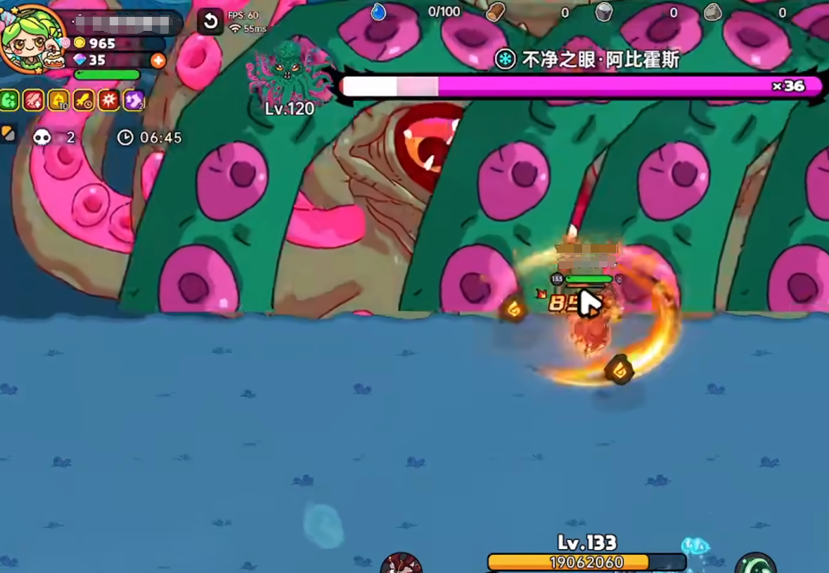 打章鱼过程中要需要注意的是,时刻留意体力值,及时通过底下珊瑚补充体力。还有的是章鱼在喷墨汁之前会有一段小前摇,如果接了技能避免误伤到队友。被章鱼伸出触手抓住以后可以通过及时的攻击进行回血。被触手抓住会持续控制一段时间才松开,期间赋予沉默与不可移动,如果玩家在10000血左右可硬抗。其余关于boss的技能并不难躲,它放出技能的同时,地面会有对应的红圈标志,玩家注意提示闪躲即可。使用防御类技能可以减免来自阿比霍斯的伤害,尤其是在它释放范围伤害技能时,确保有足够的坦度防止被秒。