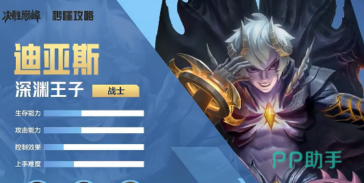 以上就是小编为大家带来的关于决胜巅峰迪亚斯这个角色的简单介绍,如果大家对这个角色感兴趣,不妨去游戏中亲自体验一下,更多相关信息可以在游侠手游上找到。迪亚斯的操作难度适中,即使是新手玩家,只要稍加练习,也能很快掌握。而且他在推进战斗和爆发攻击方面,都有着非常出色的表现。