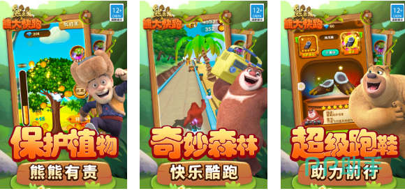 这款根据熊出没动画开发的3D画面跑酷神作蛮有意思的,可操控的角色都是熊出没动画中的经典NPC,比如熊大熊二和翠花等呆萌可爱的小熊熊,森系的背景塑造跟熊出没的主题完美交相呼应,更有海量的辅助道具会让玩家的跑酷之旅更加流畅,激情四射的跑酷过程也令熊出没动画的粉丝趋之若鹜。