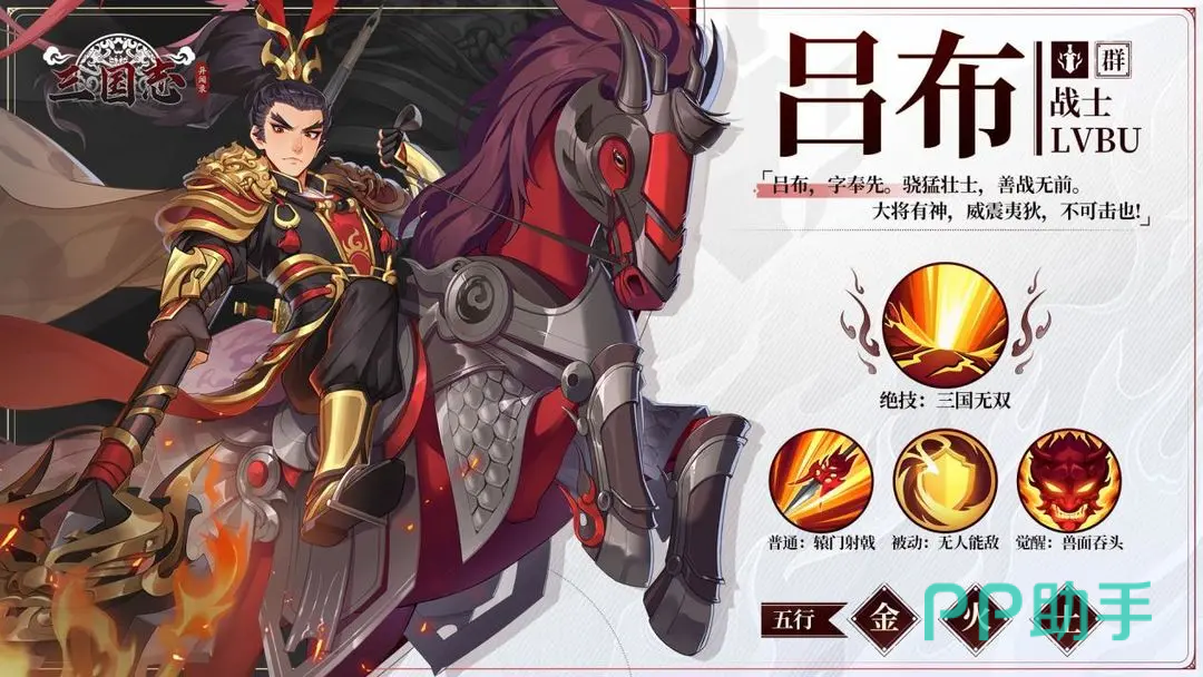 三国志异闻录吕布技能情况大家是不是都了解清楚了,通过他的技能机制可以得出答案,这是个非常强力的武将,能不断的增强自身的输出效果,从而打出爆炸的攻击力,十分强劲,非常值得小伙伴们入手和联系。