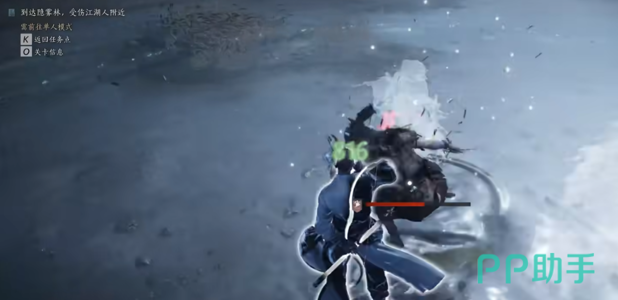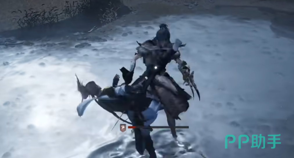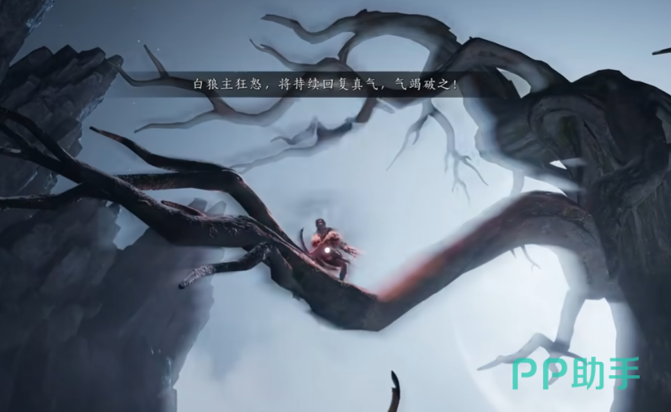 所以我们一定要趁机快速翻滚最外围,这样才能尽可能的减少伤害,避免被秒杀。之后就可以接近攻击几次,因为它会跳上上面的树枝。这时他会处于狂怒状态,并持续恢复自己的真气,要要等到他的气竭才能破掉。