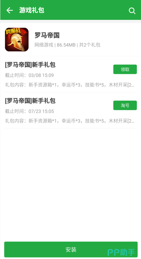 豌豆荚现正派送的游戏礼包有新手礼包等等,更多礼包可以在罗马帝国礼包专区中领取。