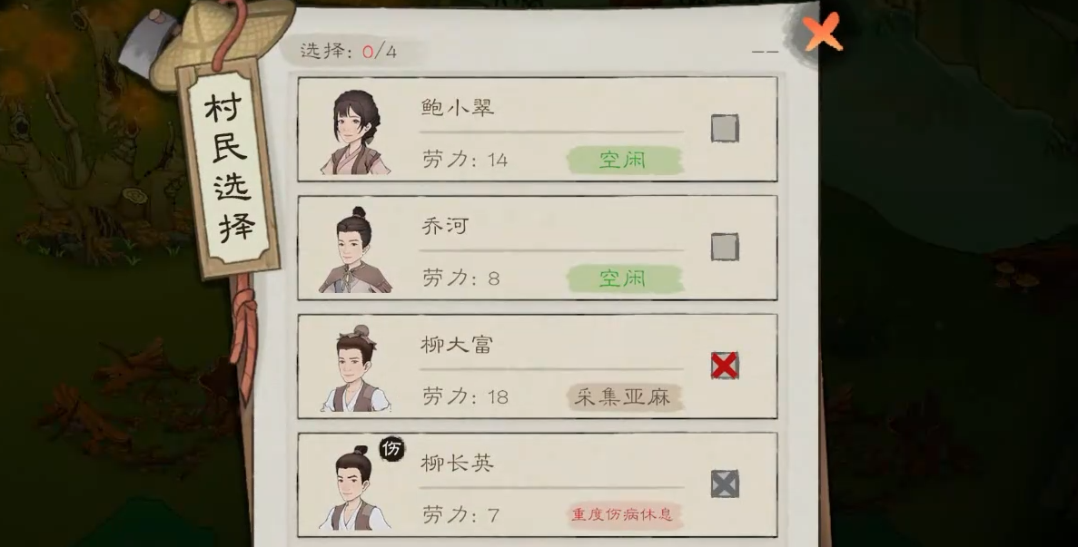 选中找到的树枝堆后,点击弹出的收集对话框中的左侧的加号(+)按钮。在弹出的村民选择界面中,选择空闲的村民,并点击确认按钮,派遣该村民前往采集树枝堆,玩家可以轻松地通过几个简单的点击操作来安排村民的工作,确保资源的及时采集。